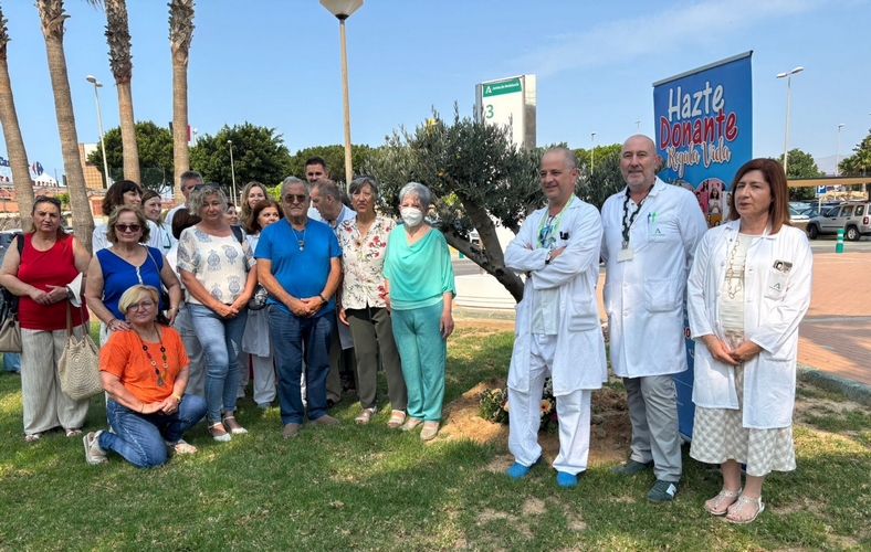 La jornada ha incluido la realización de una ofrenda floral, junto al olivo en homenaje a los donantes, realizado por Francisca Ocaña, familiar de uno de los donantes registrados este año en el hospital y Josefa López e Imane Mortabit, pacientes de la Comarca del Poniente que han recibido un órgano en los últimos años.