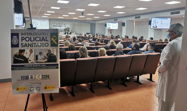 El Hospital Universitario Torrecárdenas ha recibido este miércoles la visita de los interlocutores sanitarios de la Policía Nacional en Almería que han ofrecido a los profesionales una ponencia sobre cómo manejarse ante posibles agresiones.