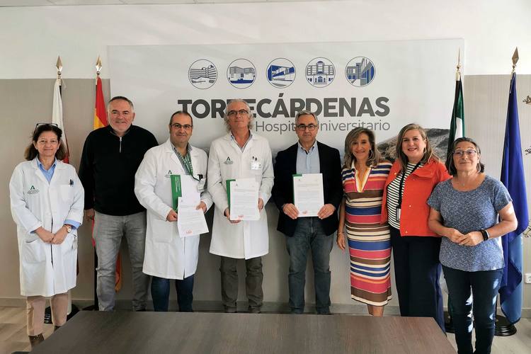 La firma ha corrido a cargo del director gerente del Hospital Universitario Torrecárdenas, Manuel Vida, que ha estado acompañado por el subdirector gerente, Felipe Cañadas, la directora de Salud Mental, Susana Miras, y la supervisora de la unidad, Lola Lázaro, y el presidente de la Federación Andaluza de Pádel, José Pérez.