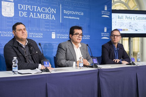 La Diputación Provincial de Almería ha presentado este lunes la segunda edición del Ciclo ‘Pioneros de la Arquitectura’ que, este año, se dedica a los arquitectos Enrique López Rull, Javier Peña Peña y Fernando Casinello. El diputado de Cultura, Antonio J. Rodríguez, el coordinador del Instituto de Estudios Almerienses (IEA), Paco Alonso, y el coordinador de esta iniciativa, el arquitecto, profesor y miembro del IEA, José Francisco García Sánchez.
