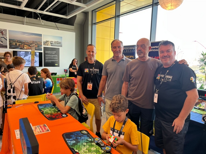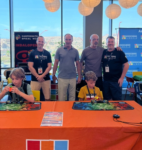La prueba también destacó por el nivel de la cantera internacional. El holandés Quin Stultiens, afincado en La Herradura (Granada), firmó un triplete histórico en la categoría Infantil, ganando 3×3, 2×2 y Pyraminx. Entre los más jóvenes, la participación de Daniel Kaack, de Alemania, y del local Pablo Galindo Ruiz, brilló en la categoría Alevín, confirmando el auge de nuevos talentos en Almería.