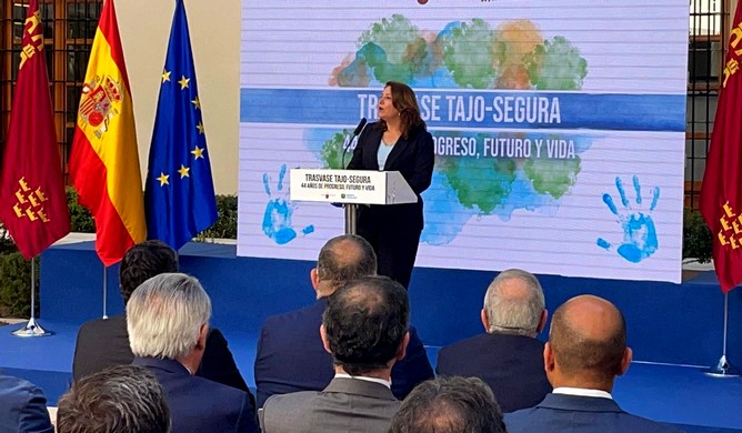 Carmen Crespo ha participado este jueves en Murcia en el acto de celebración del 44º aniversario del trasvase Tajo-Segura junto al presidente de esta región, Fernando López, y el presidente del Sindicato Central de Regantes del Acueducto Tajo-Segura (Scrats), Lucas Jiménez. En su discursos, ha subrayado la importancia de este trasvase para Almería, donde están ligados a estos recursos hídricos “1.500 empleos, 264 millones de euros, el abastecimiento de 130.000 ciudadanos y 24.000 hectáreas de cultivos”.