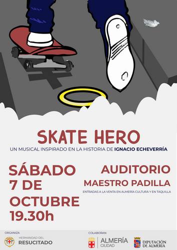 El próximo 7 de octubre, a partir de las 19.30 horas, el Auditorio Municipal Maestro Padilla se convertirá en el primer espacio escénico de Andalucía que recibirá al musical ‘Skate Hero’, que está inspirado en la figura de Ignacio Echeverría, conocido precisamente como ‘el héroe del monopatín’ y que salvó la vida a varias personas durante los atentados de Londres de junio de 2017, hasta que fue asesinado por la espalda por los terroristas. Una iniciativa que cuenta en la ciudad con el respaldo de la Hermandad del Resucitado y del Área de Cultura, Tradiciones y Fiestas Mayores del Ayuntamiento de Almería y que busca difundir apoyos para la beatificación de Echeverría. Además, se cuenta con actividades complementarias como una exposición y una vigilia, en las que estarán presentes los padres de Ignacio, Joaquín Echeverría y Ana María Miralles de Imperial.