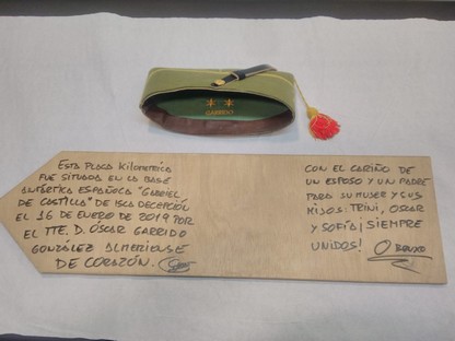 En las fotografías y el vídeo enviados por el teniente Garrido desde la Isla Decepción, se aprecia la dedicatoria que el vecino de Roquetas ha incluido en la placa: “Esta placa kilométrica fue situada en la base antártica española “Gabriel de Castilla” de Isla Decepción el 16 de enero de 2019 por el Teniente Óscar Garrido González, almeriense de corazón”. Al otro lado incluye un mensaje de amor para su familia: “Con el cariño de un esposo y un padre para su mujer y sus hijos: Trini, Óscar y Sofía ¡Siempre Unidos!”