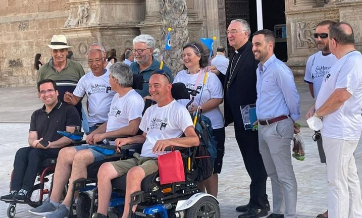 El obispo bendice la primera expedición en recorrer la ruta Mozárabe del Camino de Santiago en silla de ruedas
