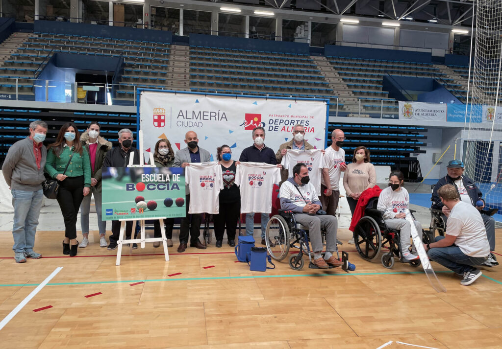 El Palacio de los Juegos del Mediterráneo ha acogido esta mañana la presentación oficial de la Escuela de Boccia, una iniciativa pionera en la provincia puesta en marcha por la Federación Almeriense de Asociaciones de Personas con Discapacidad, FAAM, y el Club de Deporte Adaptado, Depoadap, con la colaboración del Patronato Municipal de Deportes del Ayuntamiento de Almería, con el objetivo de propiciar un espacio para el deporte para las personas con discapacidad. El PMD ha cedido para esta iniciativa la pista de parqué donde desarrollarán los entrenamientos. Será la pista central del Palacio de los Juegos del Mediterráneo donde dos veces en semana, concretamente los lunes y viernes de 11 a 13 horas, tendrán lugar los entrenamientos.