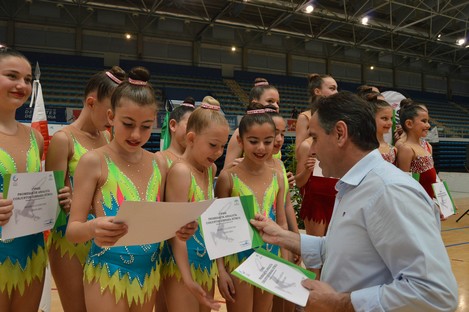 El concejal de Deportes, Juanjo Segura, asiste a la entrega de medallas del Campeonato Andaluz de Promesas, que reúne a más de 1.800 gimnastas.
