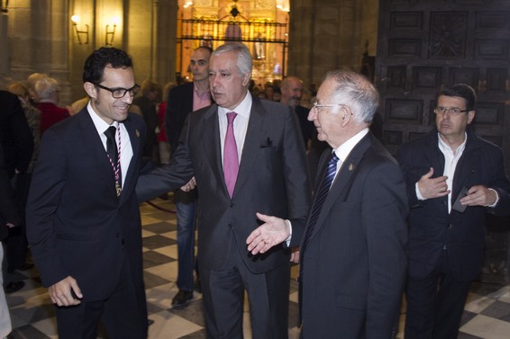 El hermano mayor de El Prendimiento (Isaac Vilches) ha recibido al presidente del PP, Gabriel Amat; al secretario general, Javier A. García; a la número uno del PP al Parlamento, Carmen Crespo; y al número cuatro, Javier Arenas, así como al diputado nacional Juan José Matarí.
