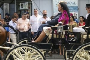 “Estamos contentos de que la muestra del paseo de caballos se haya asentado como tradición en la Feria de Almería y que se celebre en el Paseo, después de que ellos y los propios aficionados pidieran el traslado al centro. Creo que acertamos y solo hay que ver la cantidad de gente que ha venido a ver esta primera exhibición”. Con estas palabras ha inaugurado este domingo al mediodía el alcalde, Ramón Fernández-Pacheco, la sexta exhibición de carruajes de tradición que desde hoy y hasta el próximo sábado se podrá disfrutar en el tramo ‘De Caballo a Rueda’ del peatonalizado Paseo de Almería.