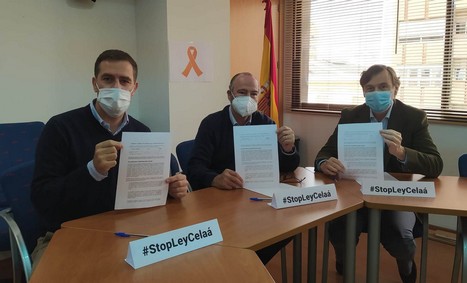 Rafael Hernando, Luis Rogelio Rodríguez y Miguel Ángel Castellón han firmado este viernes contra una ley que “te roba el derecho a elegir la educación que quieres para tus hijos, prima la vagancia frente al esfuerzo, pretende acabar con los centros de educación especial y elimina el castellano como lengua vehicular”.