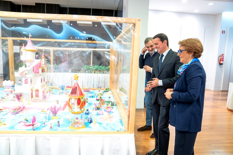 El presidente de la Diputación Provincial de Almería, Javier A. García, acompañado por el vicepresidente, Ángel Escobar, ha visitado esta mañana la nueva edición del Belén de Playmobil que lleva a cabo desde hace diez años la Asociación de Padres de Niños con Cáncer de Almería, ARGAR, con el objetivo de recaudar fondos para impulsar sus proyectos sociales destinados a mejorar la calidad de vida de los pequeños que padecen esta enfermedad y sus familiares.