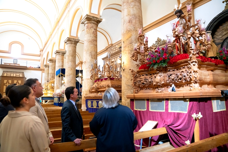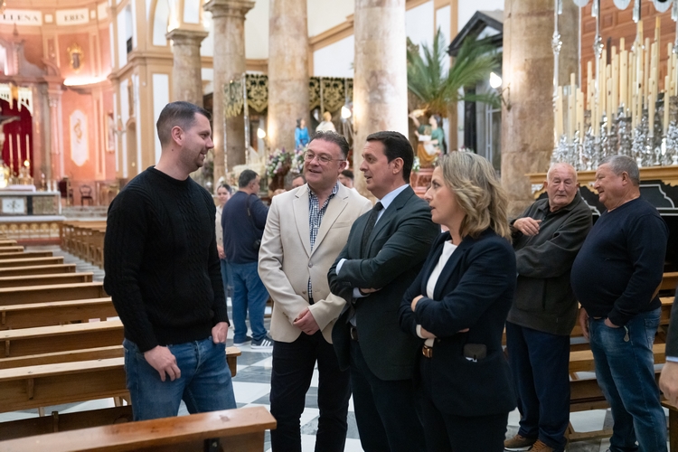 Javier A. García, junto al alcalde, José Carlos Lupión, ha visitado a las hermandades que se encuentran en la Iglesia de la Anunciación para desearles suerte en sus desfiles procesionales