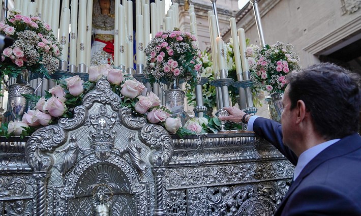 Javier A. García, pregonero del Amor, ha protagonizado la levantá del paso de la Virgen a la que le ha pedido por la salud y el bienestar de todos los almerienses.