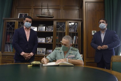 El presidente de Diputación, Javier A. García, ha recibido este jueves por la tarde al general jefe de la Brigada Rey Alfonso XIII, Marcos Llago, tras su regreso de Líbano en el marco de la misión internacional de los Cascos Azules Libre Hidalgo (BRILIB XXXII) en la que ha permanecido desde el pasado 19 de noviembre siendo el relevo más largo de una unidad española tras la emergencia sanitaria provocada por el Covid-19.
