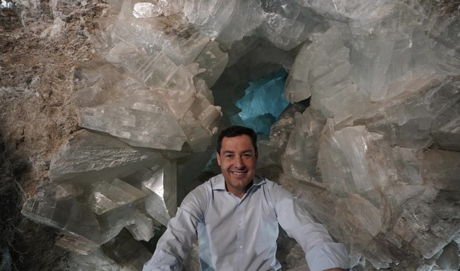 El presidente de la Junta visita la Geoda Gigante de Pulpí en Almería, declarada en febrero Monumento Natural de Andalucía