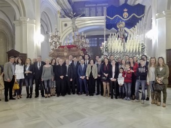 El presidente del PP-A, Juanma Moreno, ha visitado este martes junto al presidente provincial del PP de Almería, Gabriel Amat, y dirigentes del partido, a la Hermandad del Amor en la Iglesia de San Sebastián.