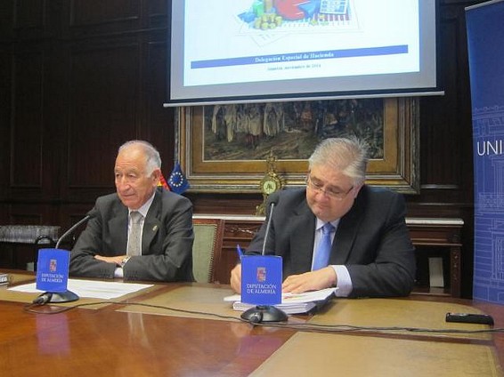 El presidente de la Diputación, Gabriel Amat, y el diputado de Hacienda, Manuel Alías, han presentado este viernes, 28 de noviembre, el presupuesto 2015 de la Diputación Provincial de Almería que consolida su “esfuerzo inversor” en la provincia de Almería. Así lo ha anunciado Amat, quien ha desvelado las cuentas provinciales que contarán con un presupuesto total de 189.400.000 millones de euros.