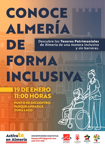 El Ayuntamiento de Almería reanudará el programa ‘Conoce Almería de forma inclusiva’ el próximo domingo, 19 de enero, con una marcha que partirá desde el Parque del Andarax. Será a las 11 horas, junto al lago, y la inscripción es gratuita, pero obligatoria para gestionar el seguro, en el whatsapp 629 679 998 o el email hlssport942@gmail.com