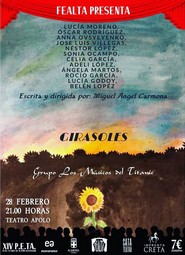 El Programa Estable de Teatro Aficionado (PETA), la iniciativa que organiza cada trimestre la Federación Almeriense De Teatro Aficionado, en el marco de la programación de temporada del Área de Cultura y Educación del Ayuntamiento de Almería, regresa este viernes, 28 de febrero, a las tablas del Teatro Apolo con una nueva representación, ‘Girasoles’, a las 21.00 horas, a cargo de la compañía Los Músicos del Titanic.