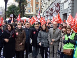 El PSOE apoya a los trabajadores de la empresa de limpieza de la base militar de Viator en una concentración en Madrid