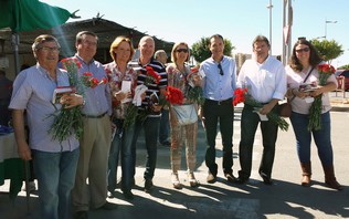 Dirigentes, militantes y simpatizantes del PSOE de Almería se han echado este sábado, 3 de mayo, a la calle para repartir por toda la geografía provincial hasta 36.000 folletos con las principales propuestas socialistas para las Elecciones al Parlamento Europeo del próximo 25 de mayo. La candidata del PSOE de Almería al Parlamento Europeo, Mari Carmen Ortiz, ha participado en el reparto que se ha llevado a cabo en la capital, en el mercadillo de la Vega de Acá, junto al secretario de Organización del PSOE provincial, Juan Carlos Pérez Navas, y el secretario general del PSOE de la capital, Fernando Martínez. Además, esta jornada de movilización electoral también ha llegado al resto de municipios de más de 15.000 habitantes: Adra, Berja, El Ejido, Huércal de Almería, Huércal-Overa, Níjar, Roquetas de Mar, Vera y Vícar.