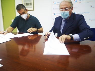 La Autoridad Portuaria de Almería (APA) llevará a cabo en los próximos meses el proyecto de ‘Ampliación del Acceso al Puerto de Almería por puerta 6’, desde la rotonda de Pescadería, con la habilitación de un nuevo carril, con lo que se conseguirá mayor fluidez en el tráfico de vehículos que acceden a la zona comercial. Para ello, será necesario desplazar el muro que separa el Puerto Comercial del Pesquero. La obra ha sido adjudicada a la empresa Instalaciones y Construcciones Almería (Incoal), por 91.302 euros (IVA incluido). El presidente de la APA, Jesús Caicedo, y el gerente de Incoal, Pedro Luis Martínez Rubio han firmado este viernes el contrato para la ejecución de los trabajos, que tienen un plazo de dos meses.