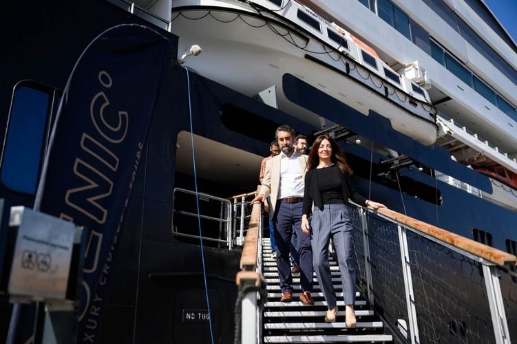 La presidenta de la APA y el concejal de Turismo dan la bienvenida hoy al Scenic Eclipse en su primera escala al puerto almeriense