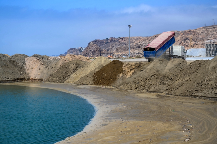 Unos 30 camiones diarios parten de las obras ferroviarias hacia el Puerto de Almería para verter tierras limpias, con características mecánicas y con suficiente capacidad portante, en la piscina del Muelle de Pechina con el objetivo de incrementar la superficie de acopio y manipulación de mercancías.