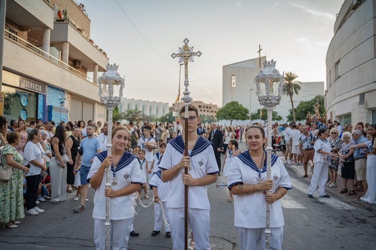 Uno de los momentos más emocionantes se vivió en la explanada del Faro, con la tradicional levantá y el simbólico Lavapiés. El acto concluyó con el regreso de la imagen a su templo, en una noche en la que Roquetas volvió a encontrarse con sus raíces y su identidad marinera.