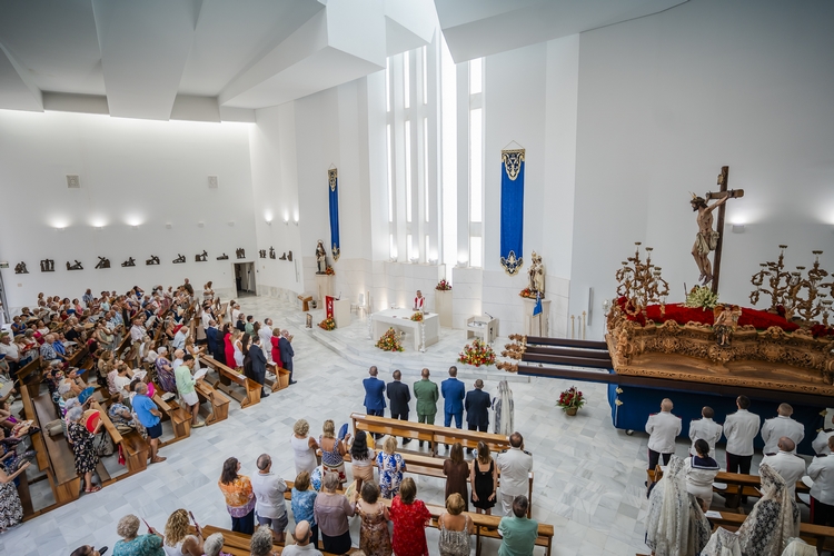Los costaleros-marineros, símbolo de esfuerzo y devoción, portaron la imagen al compás solemne de la Agrupación Musical Cristo del Perdón de Guadix, en un recorrido marcado por el silencio, las miradas de respeto y los aplausos del público.