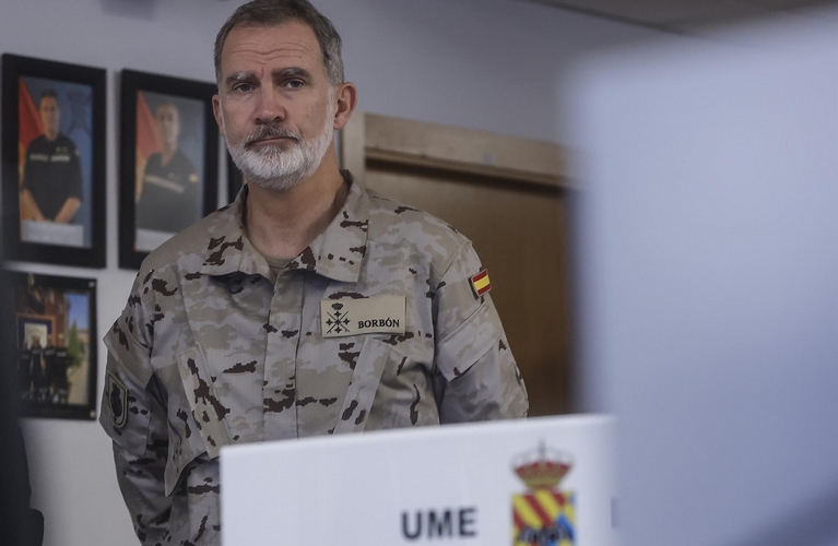 El Rey Felipe VI ha visitado a primera hora de la tarde de este domingo el Cuartel General de la Unidad Militar de Emergencia (UME) para recibir la última información sobre el despliegue de efectivos en las tareas de extinción de los incendios.