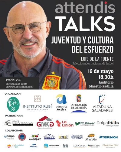El seleccionador nacional de fútbol Luis de la Fuente será el protagonista de la nueva edición de Attendis Talks, que organiza el colegio Altaduna-Saladares junto al Instituto Rubí Cirugía Plástica, VFL Import/Export y Almería Activa de la Diputación Provincial de Almería.
