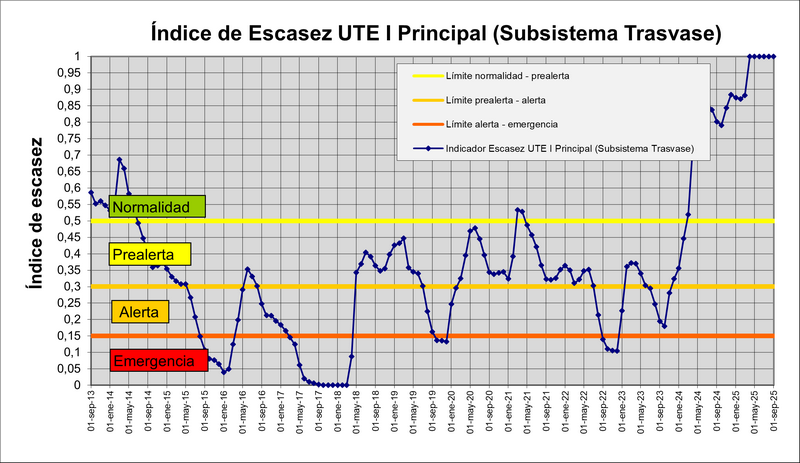 (prealerta) sobre 1. Por su parte, Índice de escasez Sistema Trasvase está en