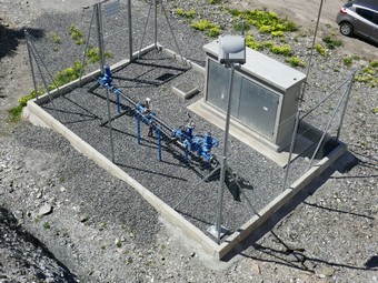 La instalación del sondeo ha consistido en la colocación de una bomba electrosumergida de 12” con una potencia de 310 CV a una profundidad de 330 metros que podrá extraer un caudal instantáneo máximo de 40 l/sg. Asimismo, la obra consta de la conexión hidráulica entre el sondeo y la red existente con la colocación de una tubería de polietileno de alta densidad de diámetro 200 mm y PN-10 atm, con una longitud de 1.650 metros. El suministro de energía para el accionamiento de la bomba electrosumergida se va a garantizar con la una nueva línea eléctrica aérea de media tensión de 20 kV de 580 metros de longitud y con la instalación de un nuevo transformador junto al sondeo de 400 KV.