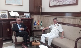 El subdelegado del Gobierno en Almería, Andrés García Lorca, ha recibido este martes al comandante naval de Almería, Blas Romero, antes de su despedida de la Comandancia naval de la capital. García Lorca ha querido agradecer, durante el encuentro desarrollado en la Subdelegación, “la labor desempeñada por el comandante naval y su servicio a La Armada durante los últimos 40 años”.