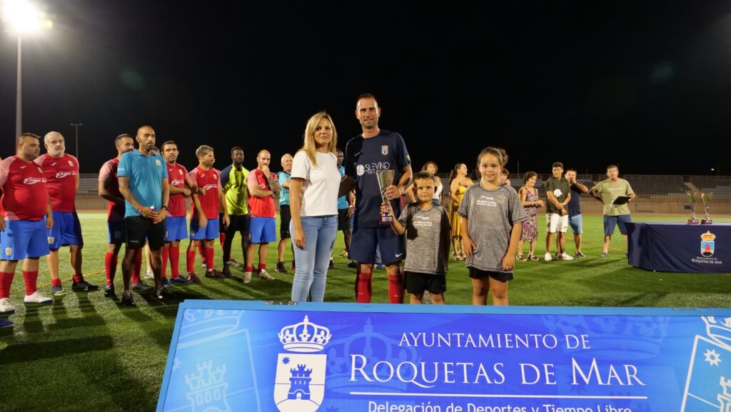 El Trofeo de Fútbol “Juanico Malavida” se ha celebrado en Roquetas de Mar los días 17, 18, 19 y 20 de agosto, en homenaje a Juan Antonio Martínez, fallecido mientras disputaba un encuentro de fútbol sala en la XX edición de las 100 Horas de Deporte de Roquetas de Mar. El pasado sábado, la concejal de Presidencia, Rocio Sánchez junto al concejal de Deportes y Tiempo Libre, José Juan Rubí, entregaron los premios de este torneo en el que participaron un total de seis equipos : Las Marinas FC, CD Amistad , Salinas Atlético, AD Roquetas, Atlético Roquetas y UD Roquetas . Finalmente, UD. Roquetas se alzó con la primera clasificación de este torneo y en un segundo lugar, Las Salinas Atlético, tras cuatro días vivido con mucha emoción en el que ha primado un gran ambiente deportivo durante todo el desarrollo de este competición.