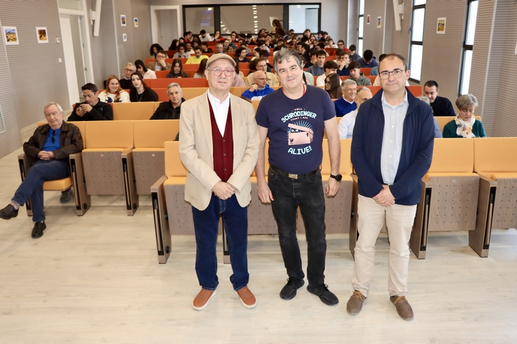 Renato Álvarez ha querido comenzar con un elogio a los Viernes Científicos: “Me parece una idea magnífica y, de hecho, esta es la tercera charla que doy en este contexto; la primera fue en 2017 y creo que esto falta en muchas universidades”. Ha insistido en que le parece “una idea fantástica acercar la ciencia especialmente a los chavales jóvenes que están en las carreras y enseñarles que hay un futuro precioso”. Satisfecho con la gran acogida, “muchas veces las salas medio vacías son un poco desestimulantes, pero he tenido la suerte de que cada vez que he venido aquí ha habido muchísimo público”. De hecho, lo considera fundamental para la buena marcha de la charla: “Intento que sea interactiva, que la gente participe, pincharles un poco, ser un poco irreverente para que la gente se implique”.