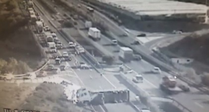 El vuelco un camión articulado en la A-7 a la altura de Roquetas corta el tráfico en la vía