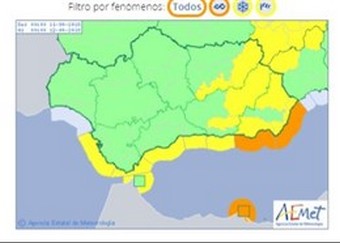 La Aemet también mantiene el aviso amarillo por fenómenos costeros, con vientos del oeste de fuerza 7, para las costas de Cádiz, Málaga, Granada y Almería, situación que mantendrá hasta las 06,00 horas de este jueves.
