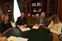 El presidente de la Diputación de Almería, Gabriel Amat, ha firmado un convenio de colaboración con la Asociación de Empleados de la Diputación de Almería, ASEMDA, con el fin de iniciar un proyecto solidario a través de los trabajadores de la Institución provincial. Se trata de un sistema voluntario de microdonaciones 1 euro mensual a través de las nóminas de los trabajadores de la Diputación y cuya recaudación irá destinada a un proyecto solidario que será elegido por los propios participantes.