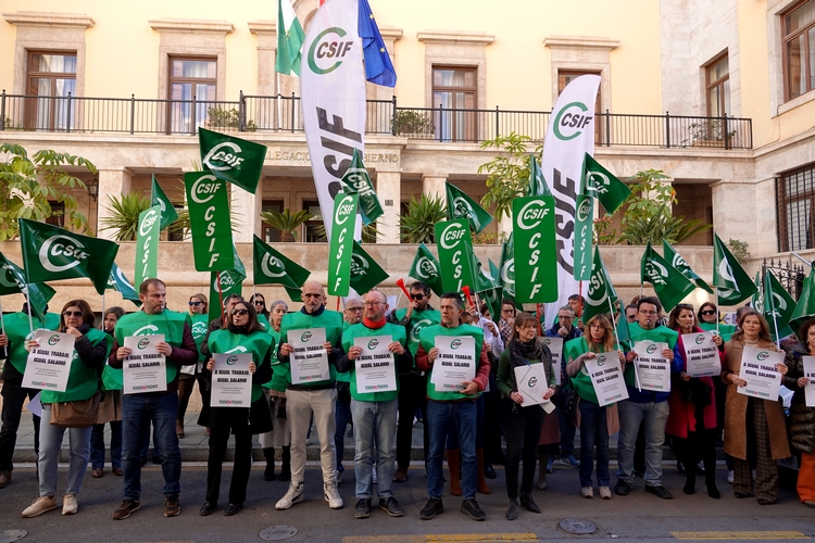 Miles de empleados y empleadas públicas se han concentrado hoy en toda España, convocados por CSIF, para exigir al Gobierno que desbloquee la negociación de las condiciones laborales que afectan al colectivo en materia salarial, de jubilación, jornada o teletrabajo, entre otros. En el caso de la provincia, la movilización ha tenido lugar en la Subdelegación del Gobierno.