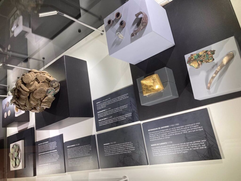 La muestra procede del Museo Nacional de Arqueología Subacuática (ARQVA) y se inicia con una introducción histórica del expolio sufrido por el patrimonio subacuático español a lo largo del siglo XX y prosigue con la intensa batalla legal iniciada por España ante los tribunales estadounidenses para recuperar los bienes expoliados de la fragata Nuestra Señora de las Mercedes por la empresa Odyssey, que culminó con la recuperación de todo lo extraído.