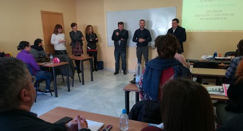 Almarir Consultores, el centro de formación que ha visitado hoy el delegado territorial, junto a su director Miguel Ángel González., impartirá cuatro cursos para hasta 60 personas desempleadas, todos conducentes a certificado de profesionalidad de nivel 3 y gracias a una subvención global de la Junta de Andalucía de 240.000 euros. Este centro tiene iniciados actualmente dos cursos, el de ‘Gestión y creación de microempresas’, de 520 horas, que ha sido visitado hoy por Miguel Ángel Tortosa, y el de ‘Comercialización y administración de productos y servicios financieros’, de 800 horas lectivas.