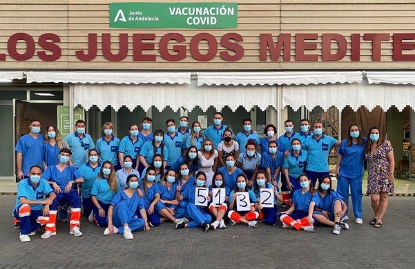 En el seno del equipo saben que la batalla sigue su curso y que no hay que bajar la guardia frente a la COVID-19. Lejos de vestir o edulcorar la realidad, la vacunación masiva en particular y, la lucha contra el Coronavirus en general, ha sido, y es, una tarea ardua, complicada y que lleva consigo un desgaste muy alto para todos los profesionales del mundo de la sanidad: “Hemos pasado temporadas con mucha carga de trabajo, con miles de pacientes diarios a los que vacunar, con días en los que mis compañeros y yo nos ofrecíamos voluntarios para doblar turnos y poder alcanzar récords, inmunizar a la mayor población posible. Recuerdo que hubo varios días de lluvia en los que salíamos con chubasqueros a vacunar en la zona de vehículos. Muchos otros en los que el calor era tan insoportable que teníamos que hacer turnos para no estar mucho tiempo bajo el sol, y alguno que otro en el que los sistemas informáticos dejaban de funcionar y dificultaban mucho nuestro trabajo. Pero pese al cansancio y el estrés de esos momentos, el haber contado con profesionales a mi lado como han sido mis compañeros ha hecho que recuerde todos esos días con cariño y muchísima satisfacción”, concluye Teresa Delgado.