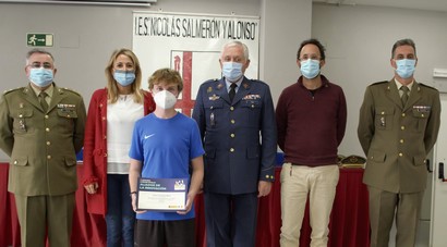 El pasado jueves 24 de noviembre, el departamento de Reclutamiento de la Subdelegación de Defensa de Almería realizó la entrega del diploma y premios al ganador provincial de la 7ª edición del Concurso Literario Escolar “Carta a un Militar Español”, alumno Álvaro Fernández Martín del IES “Nicolás Salmerón y Alonso” de Almería, en las instalaciones del citado Centro.
