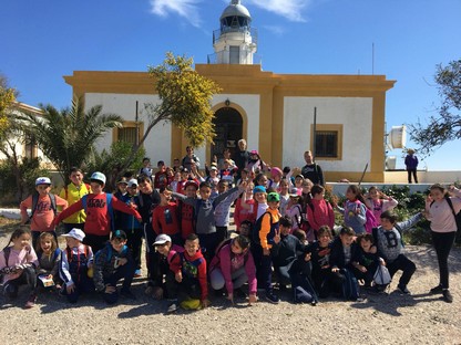 Un grupo de más de 50 alumnos y alumnas del Colegio Concordia de Campohermoso (Níjar), han estado de excursión en el faro de Mesa Roldán, en Carboneras. Acompañados por tres maestros del centro de enseñanza, los escolares de Tercero de Primaria, han sido guiados por el técnico de Sistemas de Ayudas a la Navegación Mario Sanz Cruz, que además de explicarles el funcionamiento del faro, les ha mostrado el museo que ha creado en su interior –una colección de todo tipo de objetos relacionados con los faros, que se ha convertido en un aliciente más para los numerosos visitantes que recibe esta instalación de la Autoridad Portuaria de Almería.