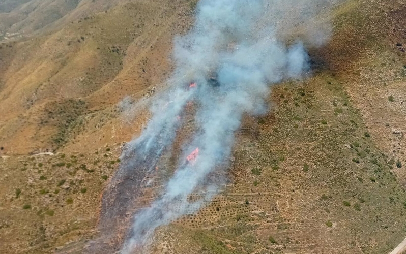 20/05/2025 Vista aérea del incendio declarado en el término municipal de Uleila del Campo (Almería).. Los efectivos del Plan Infoca han dado por estabilizado el incendio forestal declarado este martes en un paraje del término municipal de Uleila del Campo, en plena comarca almeriense de Los Filabres-Tabernas, donde las llamas han afectado una zona agreste cercana al cerro de la Virgen. POLITICA ANDALUCÍA ESPAÑA EUROPA ALMERÍA SOCIEDAD INFOCA