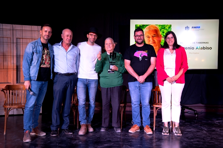 En la segunda jornada de Almería Western Film Festival (AWFF), el cineasta Eugenio Alabiso ha sido galardonado con el premio ‘Desierto de Tabernas’, reconociendo su trabajo como editor en las películas que definieron el ‘spaghetti western’, entre ellas los clásicos dirigidos por Sergio Leone, como ‘El bueno, el feo y el malo’. La entrega del premio se ha celebrado en el icónico Saloon de Oasys MiniHollywood, con la participación del alcalde de Tabernas, José Díaz, la diputada de Cultura, Cine e Identidad Almeriense de la Diputación de Almería, Almudena Morales, el gerente del poblado, José María Rodríguez, el director del festival, Juan Francisco Viruega y el cineasta, Guillermo de Oliveira.