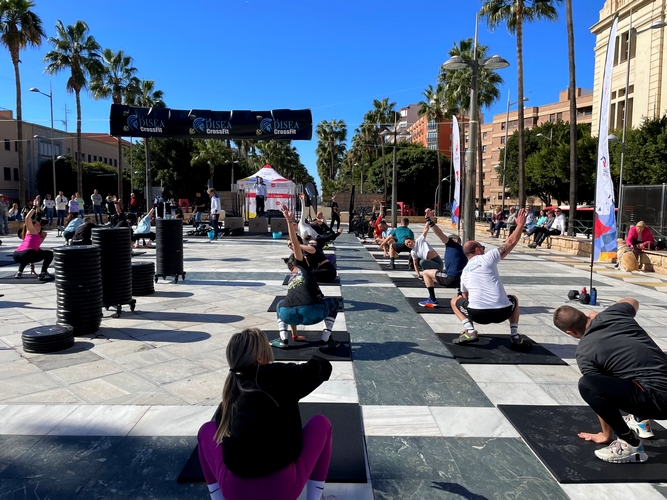 El sol ha vuelto a iluminar la ciudad y, de inmediato, los almerienses han salido a la calle a practicar deporte, con una exhibición de crossfit y halterofilia celebrada esta mañana en el Mirador de la Rambla, organizada por el Ayuntamiento de Almería y el club La Odisea, y enmarcado en el Tour del Talento que promueve la Fundación Princesa de Girona. Desde las 10:30 h. y durante dos horas, varias decenas de personas han desarrollado una de las disciplinas deportivas más de moda, como es el crossfit, que aúna ejercicios de cardio y fuerza, y lo han complementado con la técnica de la halterofilia.