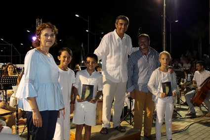 Tras la actuación, el concejal de Cultura, Juan Bautista López, y la concejala de Servicios Sociales, Fina García, han hecho entrega de una placa a ambas bandas musicales en reconocimiento a su participación en dicha actividad, una de las primeras recogidas dentro del programa de actos veraniego “EXPLÁYATE” 2017.